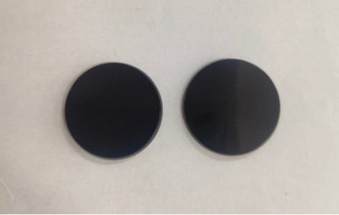 取锰硅合金样品0.2000g(±0.0005g)、助熔剂7.0000g(±0.0005g)、硝酸锂1.0000g(±0.0005g)、硝酸钠0.6000g(±0.0005g),称取0.0500g脱模剂用裁成小块的定量滤纸包裹;依次倒入坩埚中:将0.2g样品、2g助熔剂、1g硝酸锂、0.6g硝酸钠充分混合均匀,剩余助熔剂2/3倒入坩埚底部,将混合均匀的样品放在中间,最后将剩下1/3的助熔剂覆盖住样品在熔样机中按照表(1)熔样参数进行熔样,待熔样结束熔片冷却至室温时,在非待测面做好标识待测,如图(1)所示。